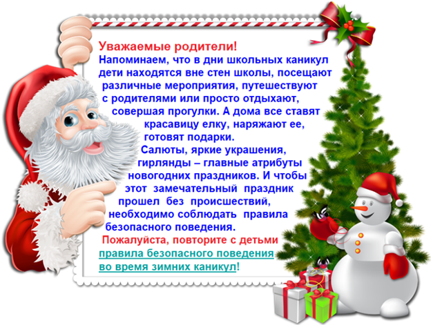 Правила безопасности в зимние каникулы