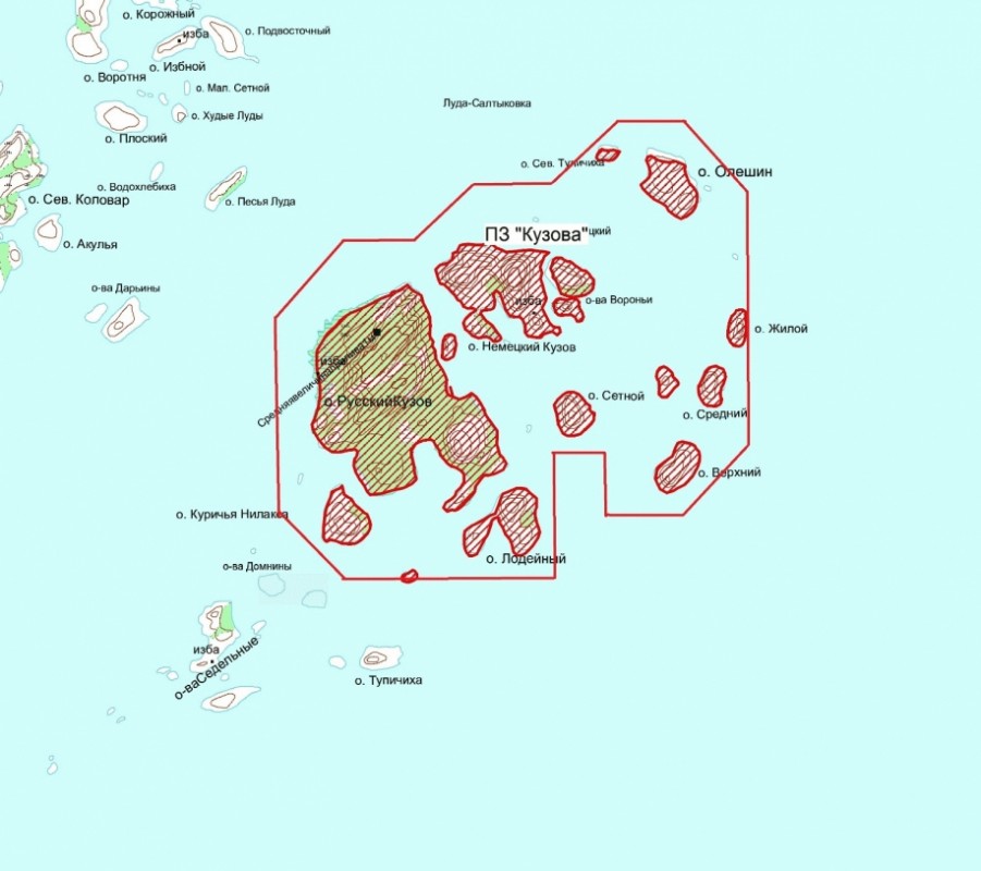 1.3. На территории Кемского района и включает в себя острова Кузовецкого архипелага Кемских шхер Белого моря (острова Русский Кузов, Немецкий Кузов, Олешин, Верхний, Средний, Жилой, Сетной, Лодейный, Вороньи, Куричья Нилокса, Чернецкий, Северная Тупичиха).