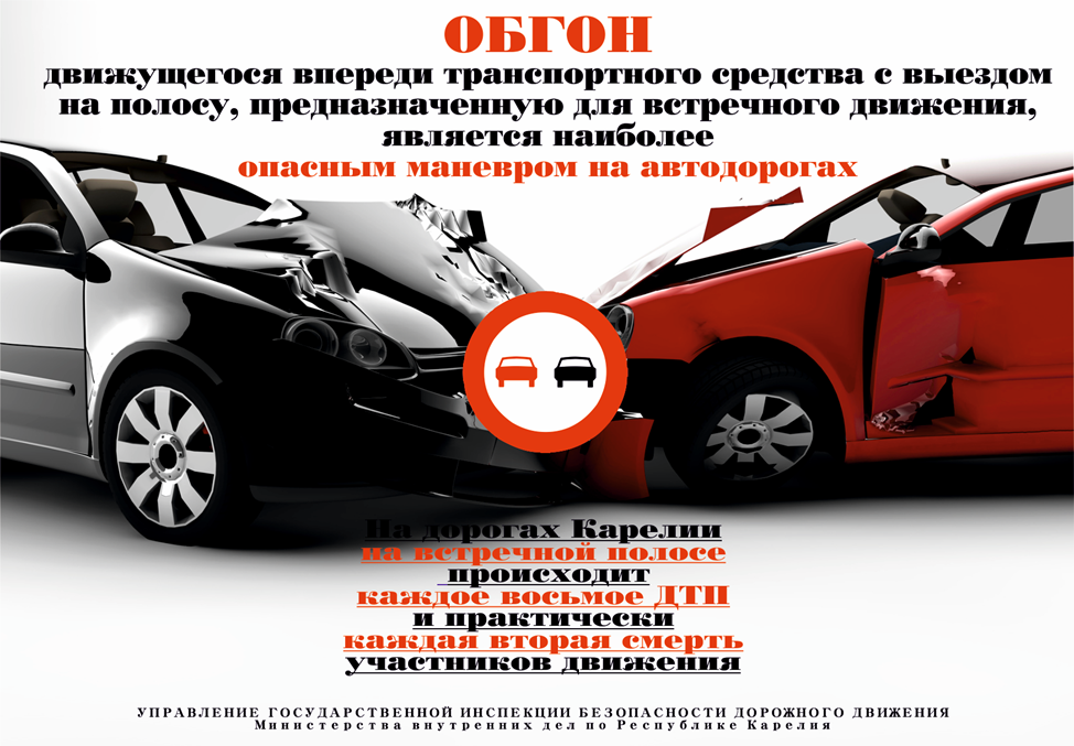 За 2 месяца текущего года на дорогах Карелии зарегистрировано 71 дорожнотранспортных происшествий, в которых 25 человека погибли и 78 получили травмы. Наиболее тяжкими последствиями характеризуются ДТП на федеральных дорогах. Основной вид ДТП на федеральных автодорогах – столкновение. Основные причины – нарушения правил обгона, выезда на полосу встречного движения в нарушение ПДД РФ. Водители не учитывают все риски данного маневра особенно в зимний период. За прошедший период этого года дорожными полицейскими на территории Кемского района было привлечено 19 водителей, за выезд на встречную полосу движения, данной статьей предусмотрен штраф в размере 5 000 рублей, а лишение прав может быть наложено на срок 4-6 месяцев.