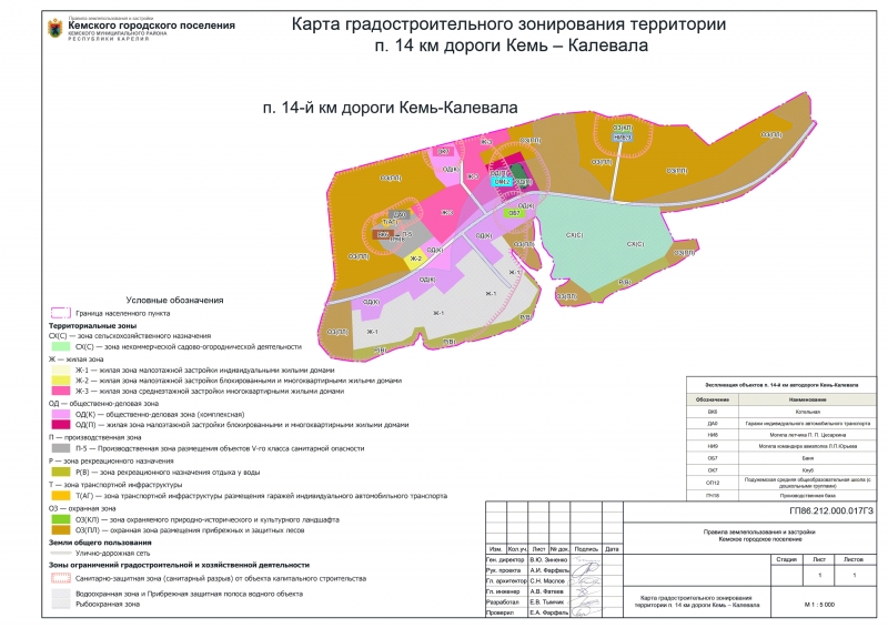 Карта градостроительного зонирования п. 14-й км дороги Кемь- Калевала