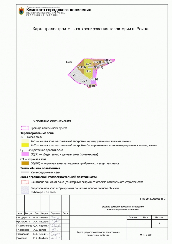 Карта градостроительного зонирования п. Вочаж